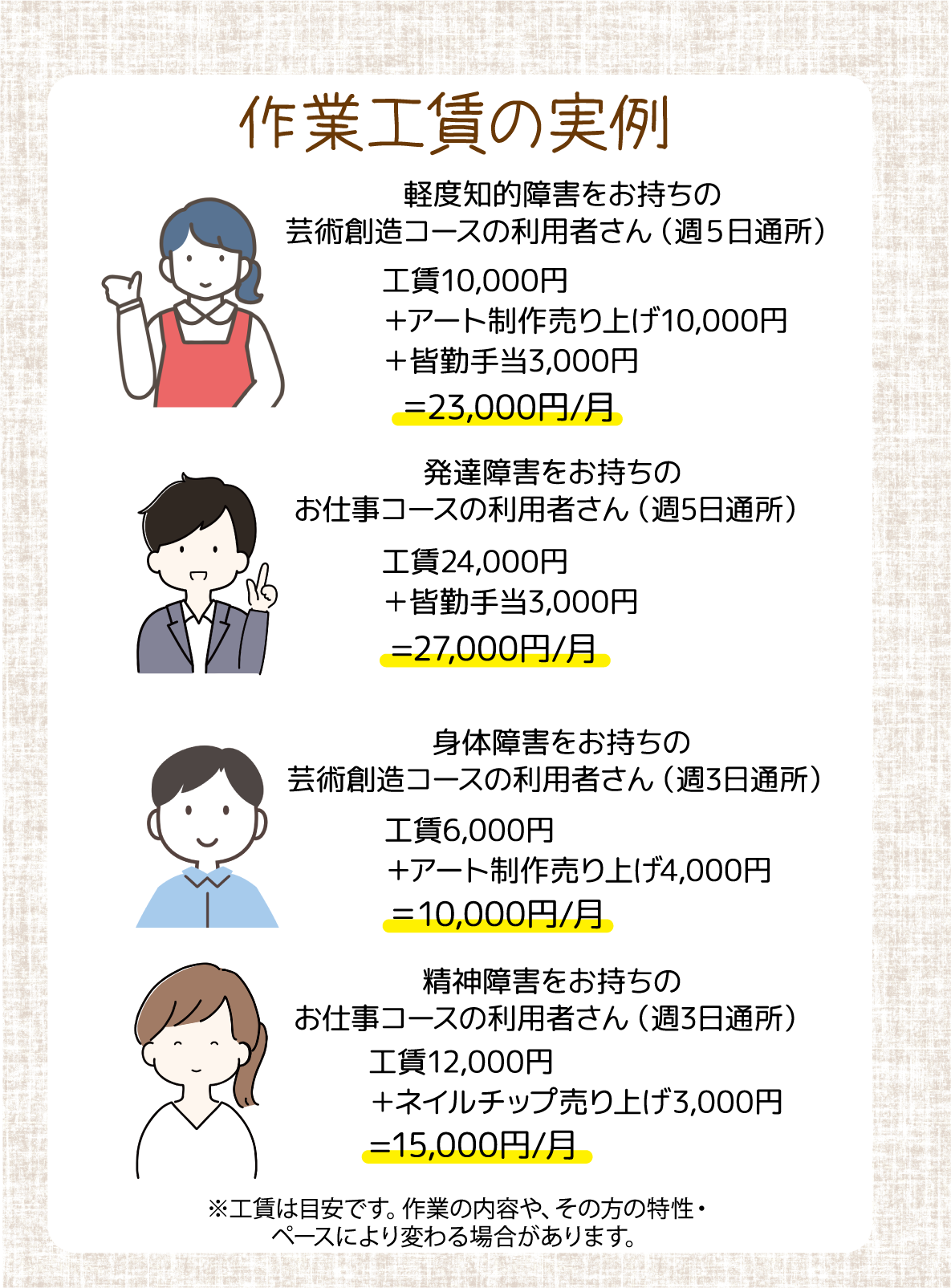 • 上記の報酬は一例であり、作業内容や時間、また個人の能力によって変動します。